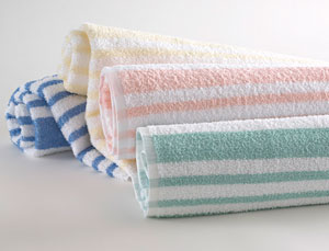 Made of 100% cotton. These Hotel Beach Towels are offered in 4 colors to choose from. The institutional laundering, no problem Tropical Stripe Hospitality Beach Towels withstand heavy duty laundering day in day out.